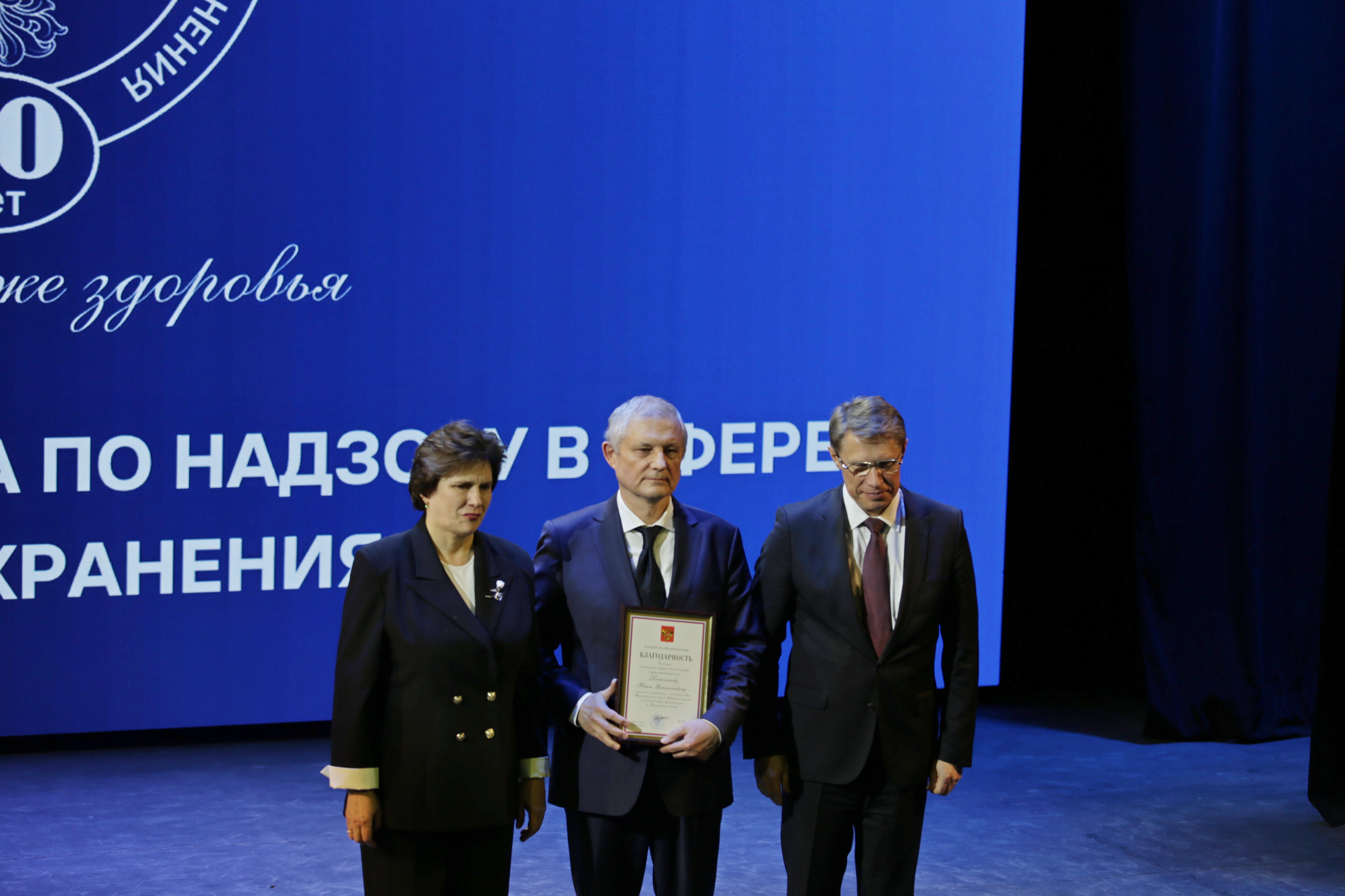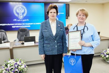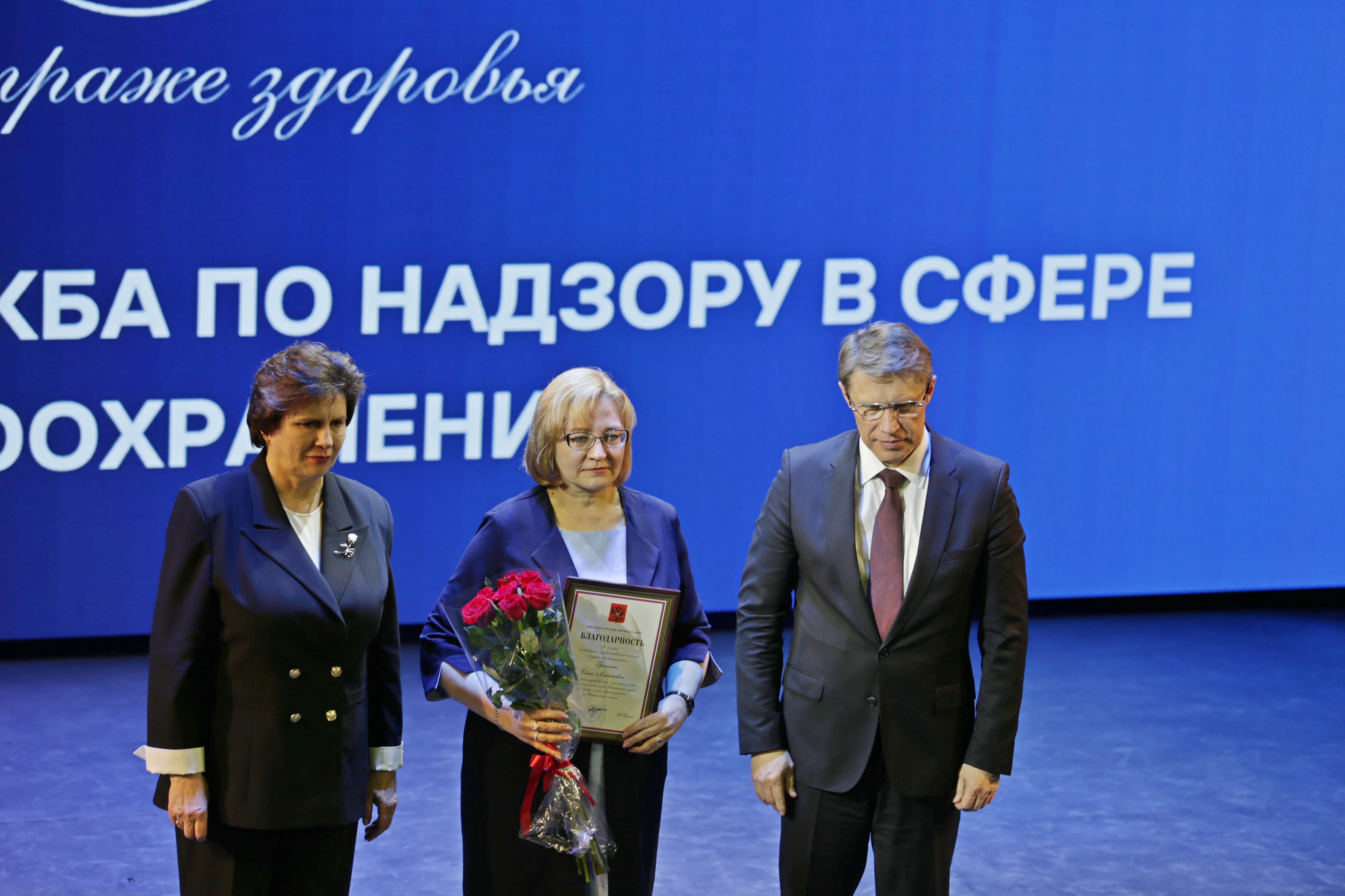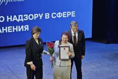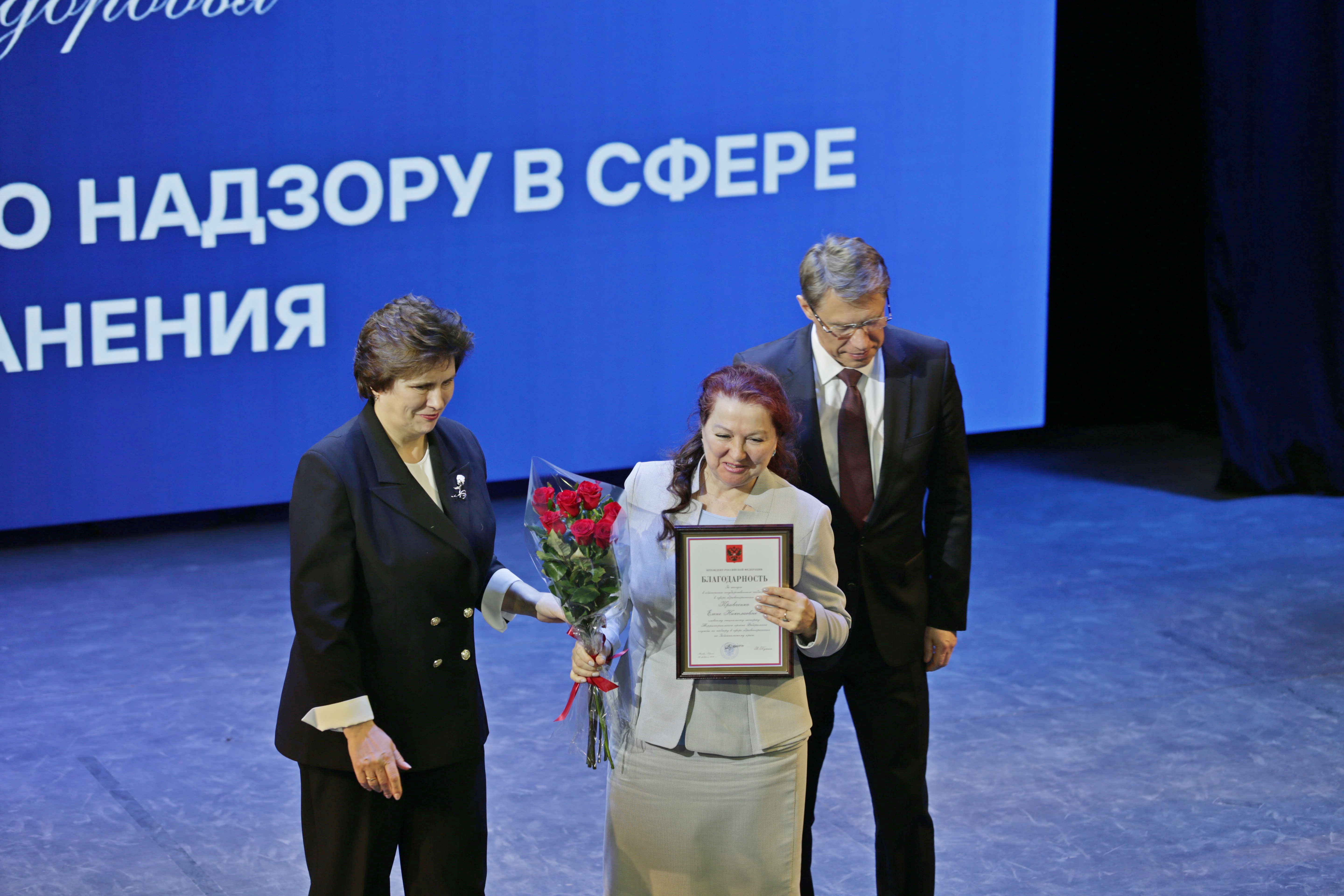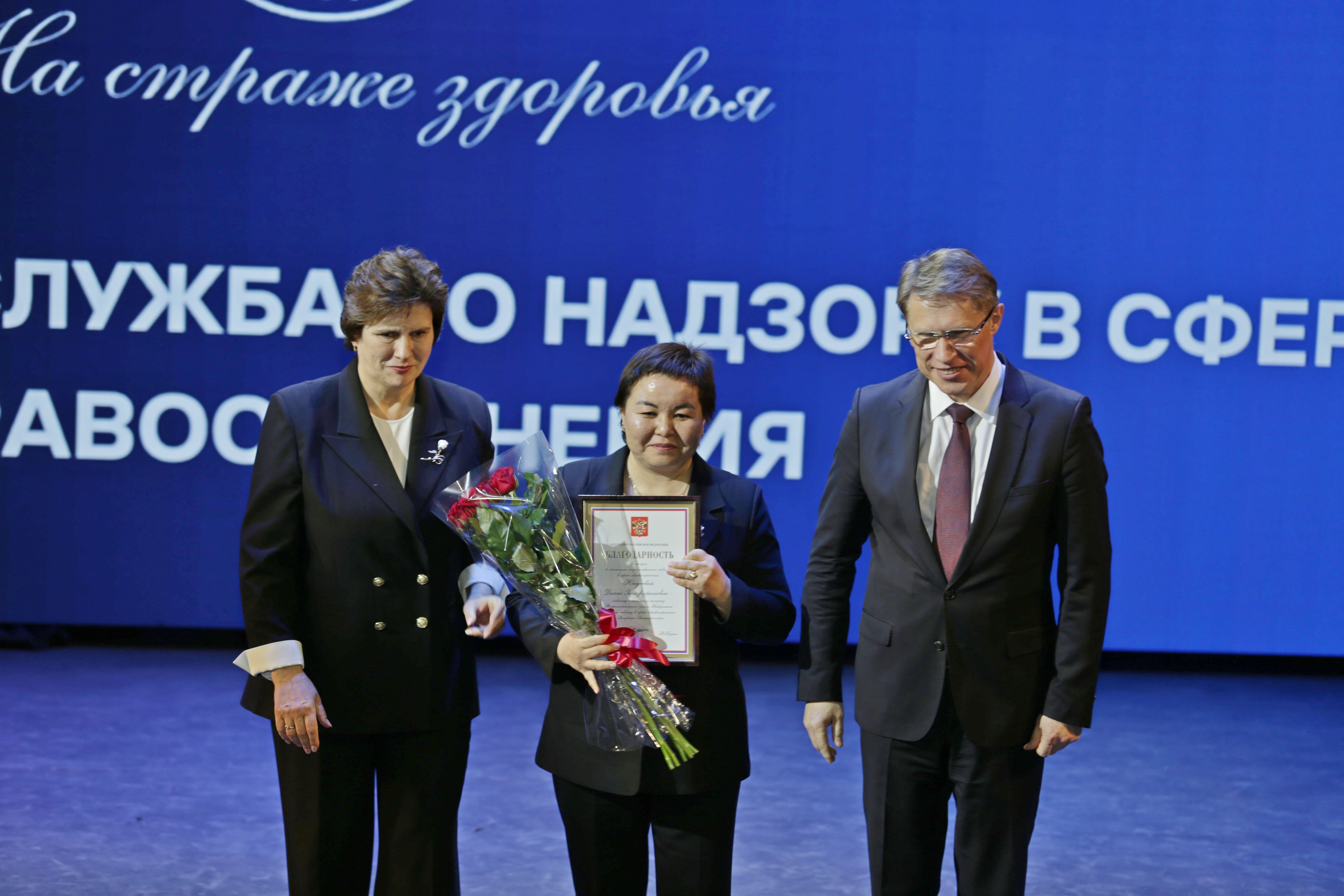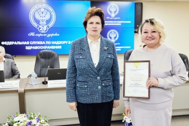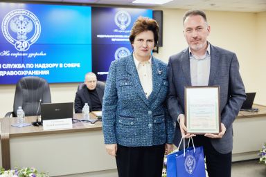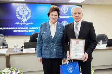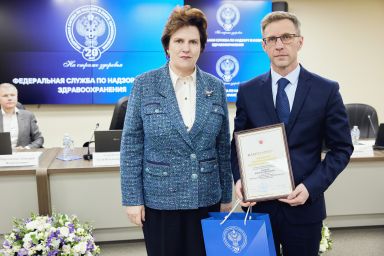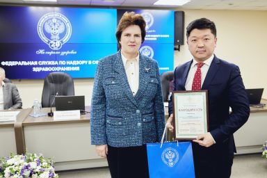 В рамках расширенной итоговой коллегии Минздрава России на международной выставке-форуме «Россия» коллектив Росздравнадзора получил Благодарность Президента Российской Федерации Владимира Владимировича Путина «За заслуги в обеспечении государственного надзора в сфере здравоохранения». Благодарность Президента РФ торжественно вручил руководителю Службы Алле Самойловой Министр здравоохранения Российской Федерации Михаил Мурашко.
