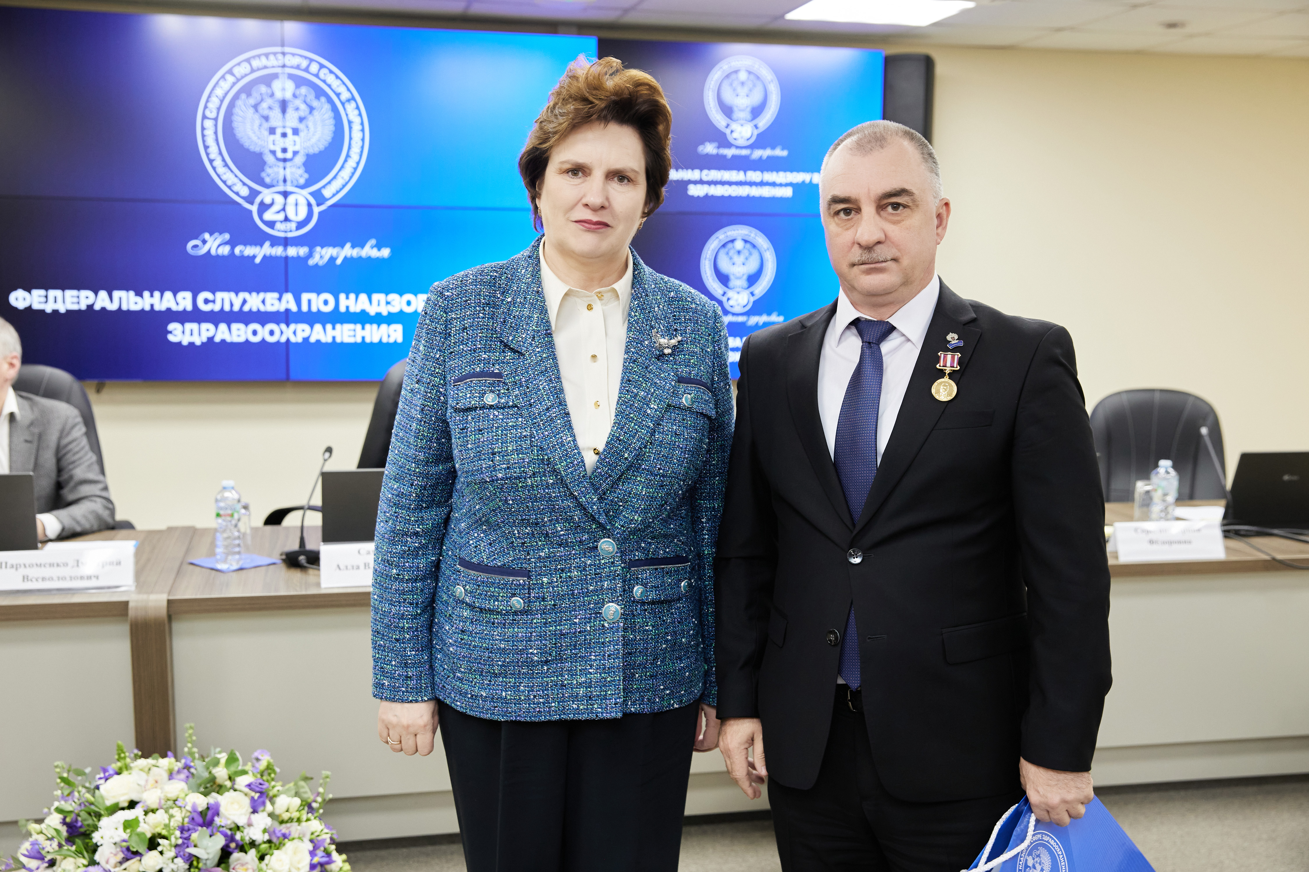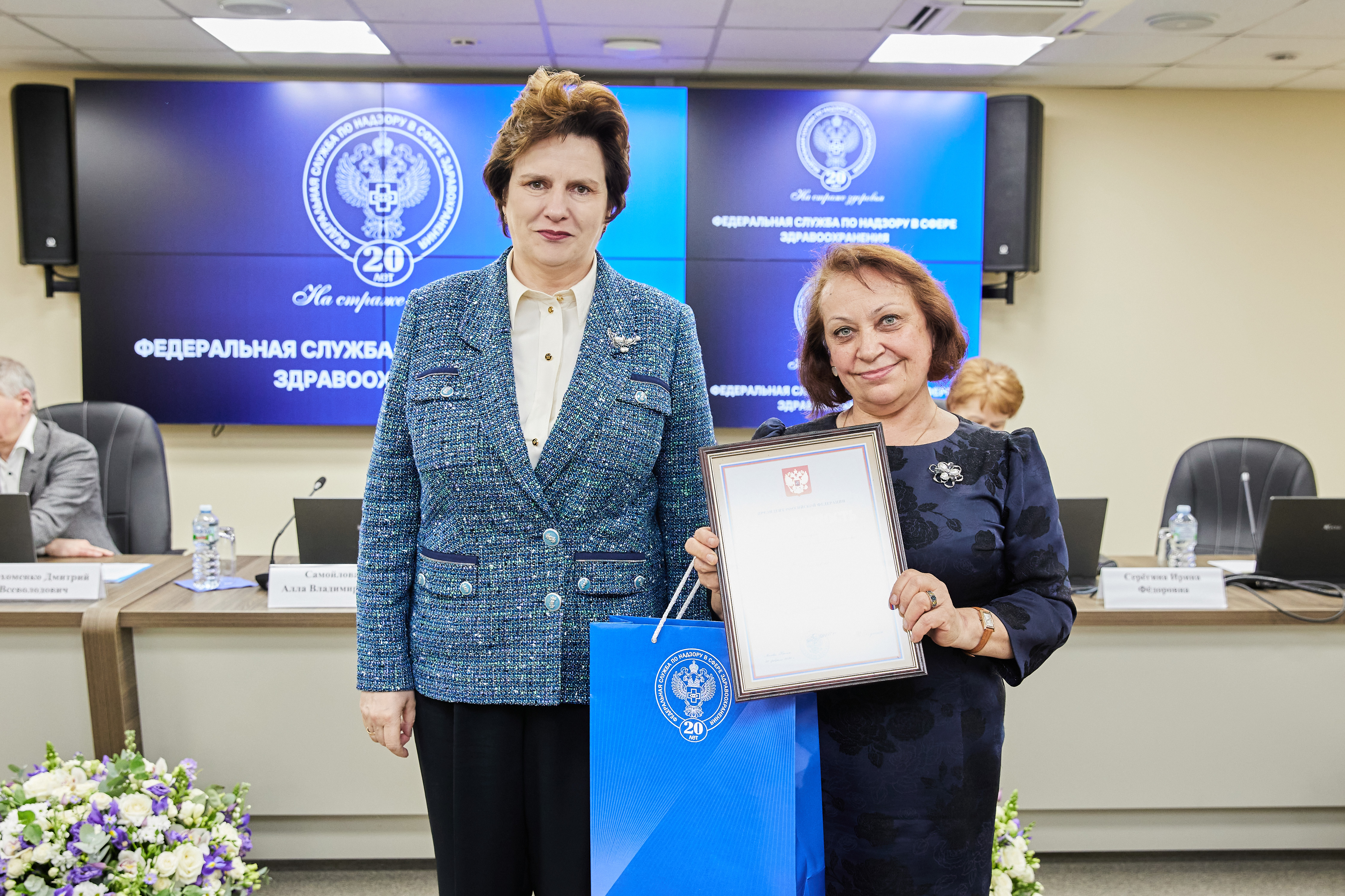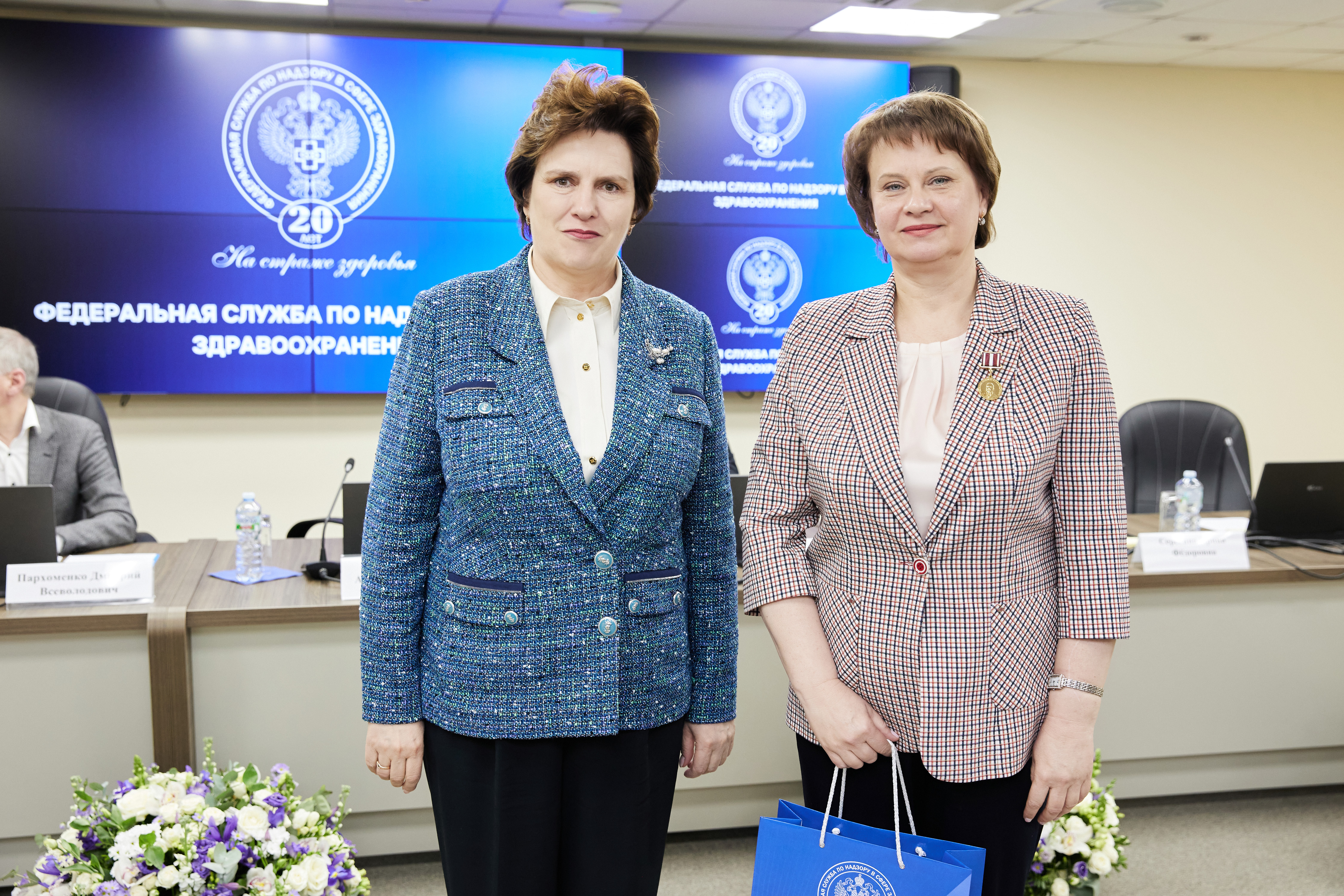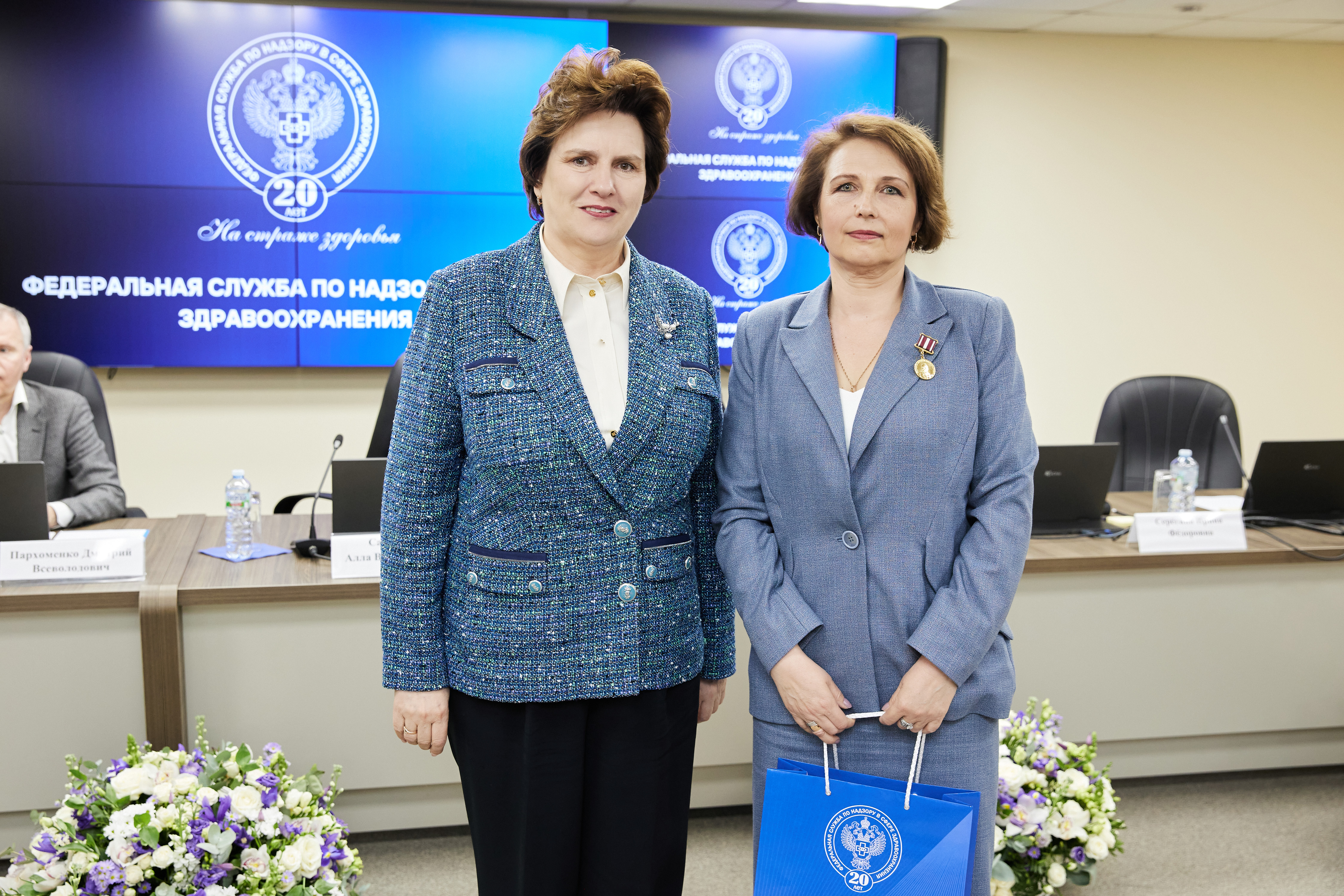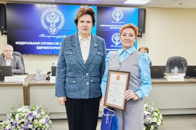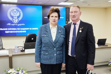 В ходе торжественных мероприятий лучшие сотрудники Росздравнадзора получили заслуженные награды из рук Министра здравоохранения Российской Федерации Михаила Мурашко и руководителя Росздравнадзора Аллы Самойловой: