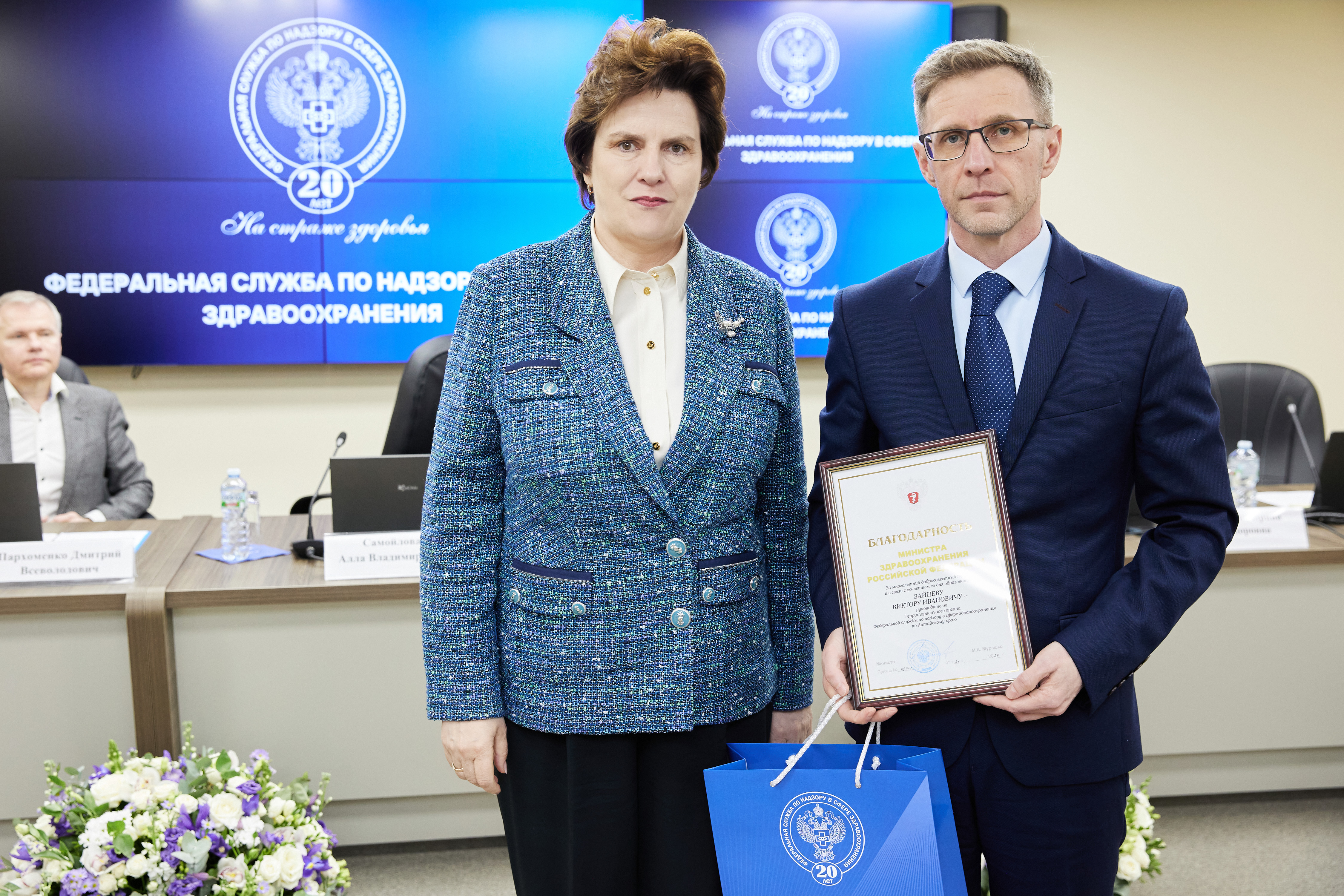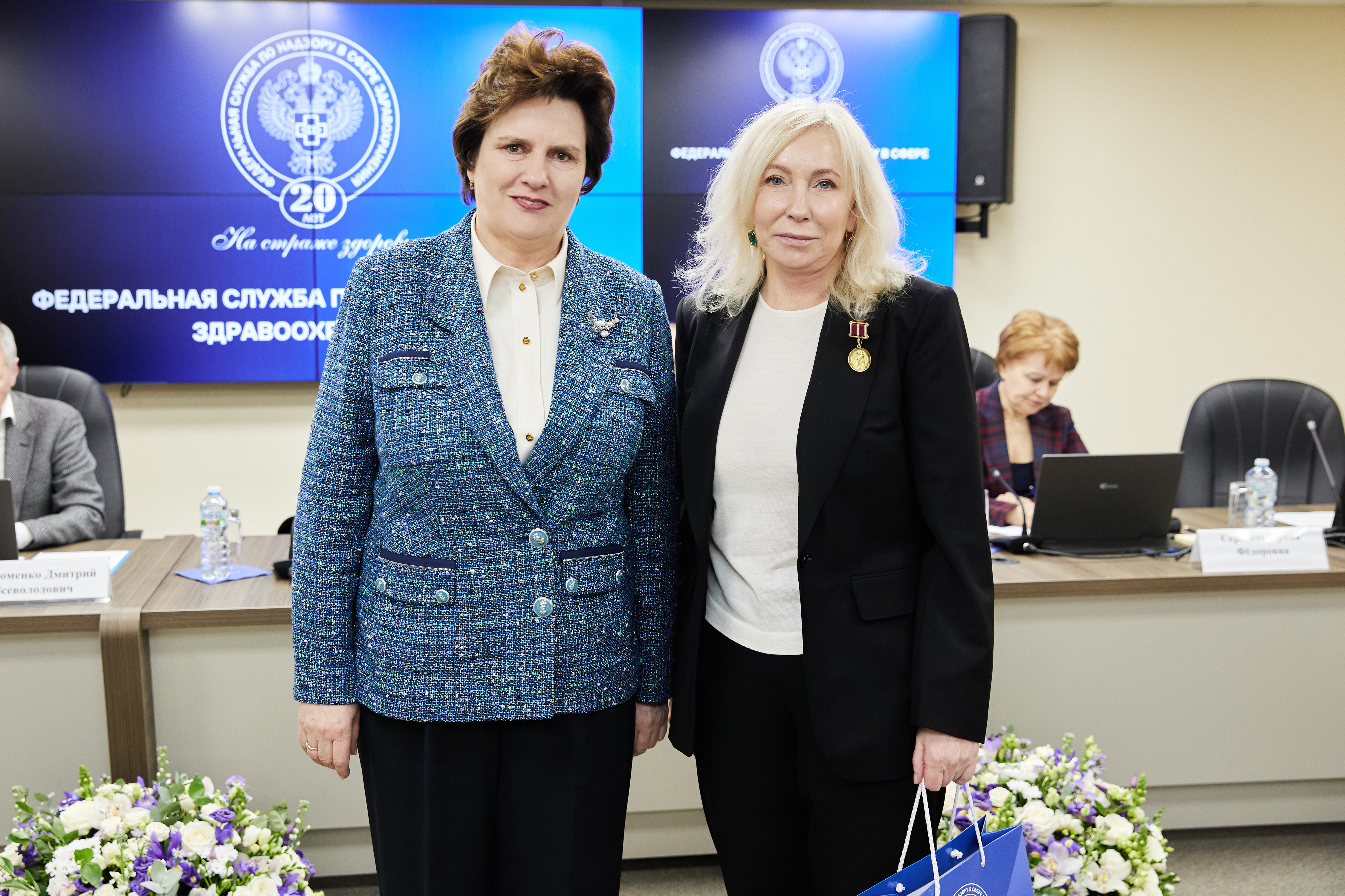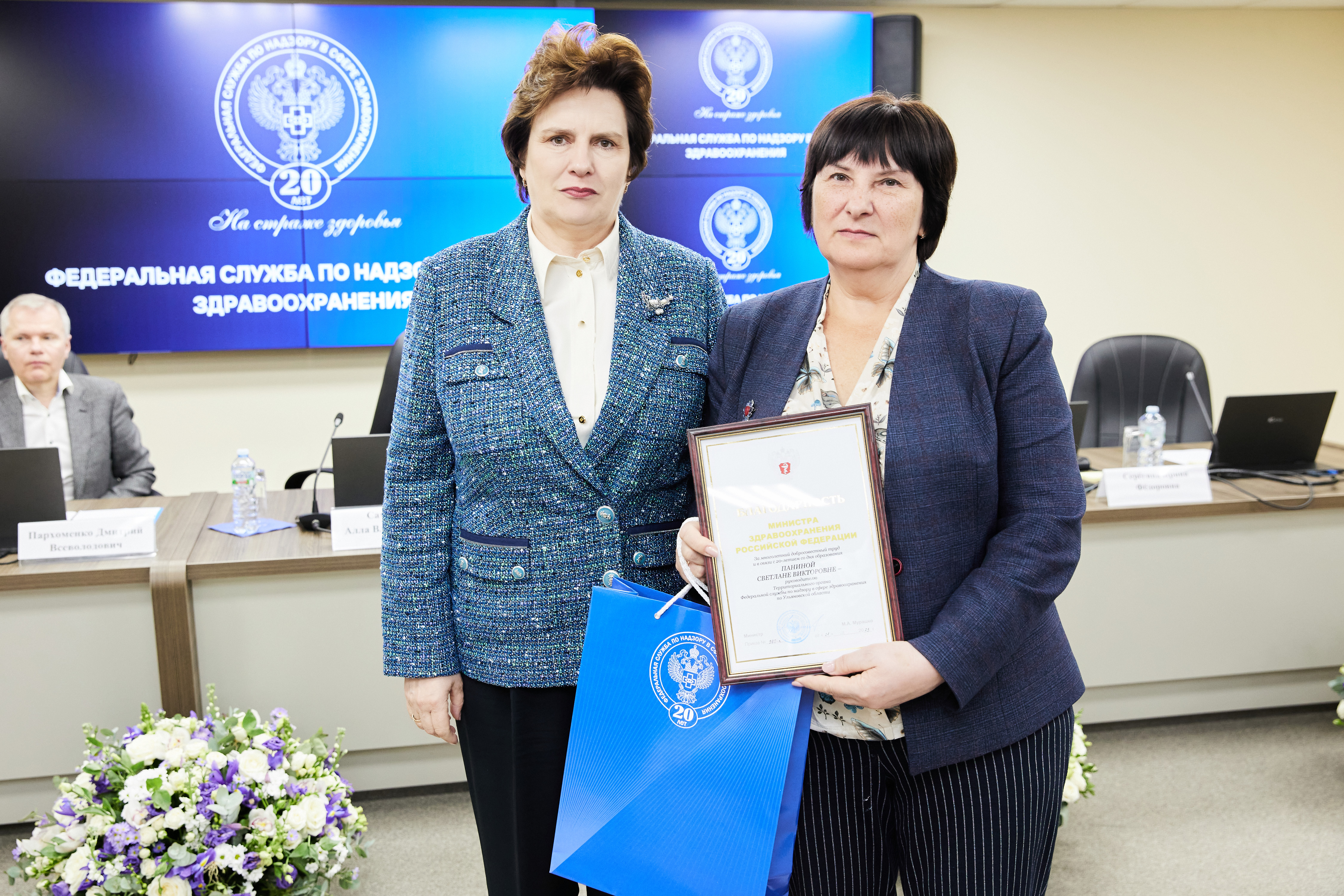 В ходе торжественных мероприятий лучшие сотрудники Росздравнадзора получили заслуженные награды из рук Министра здравоохранения Российской Федерации Михаила Мурашко и руководителя Росздравнадзора Аллы Самойловой: