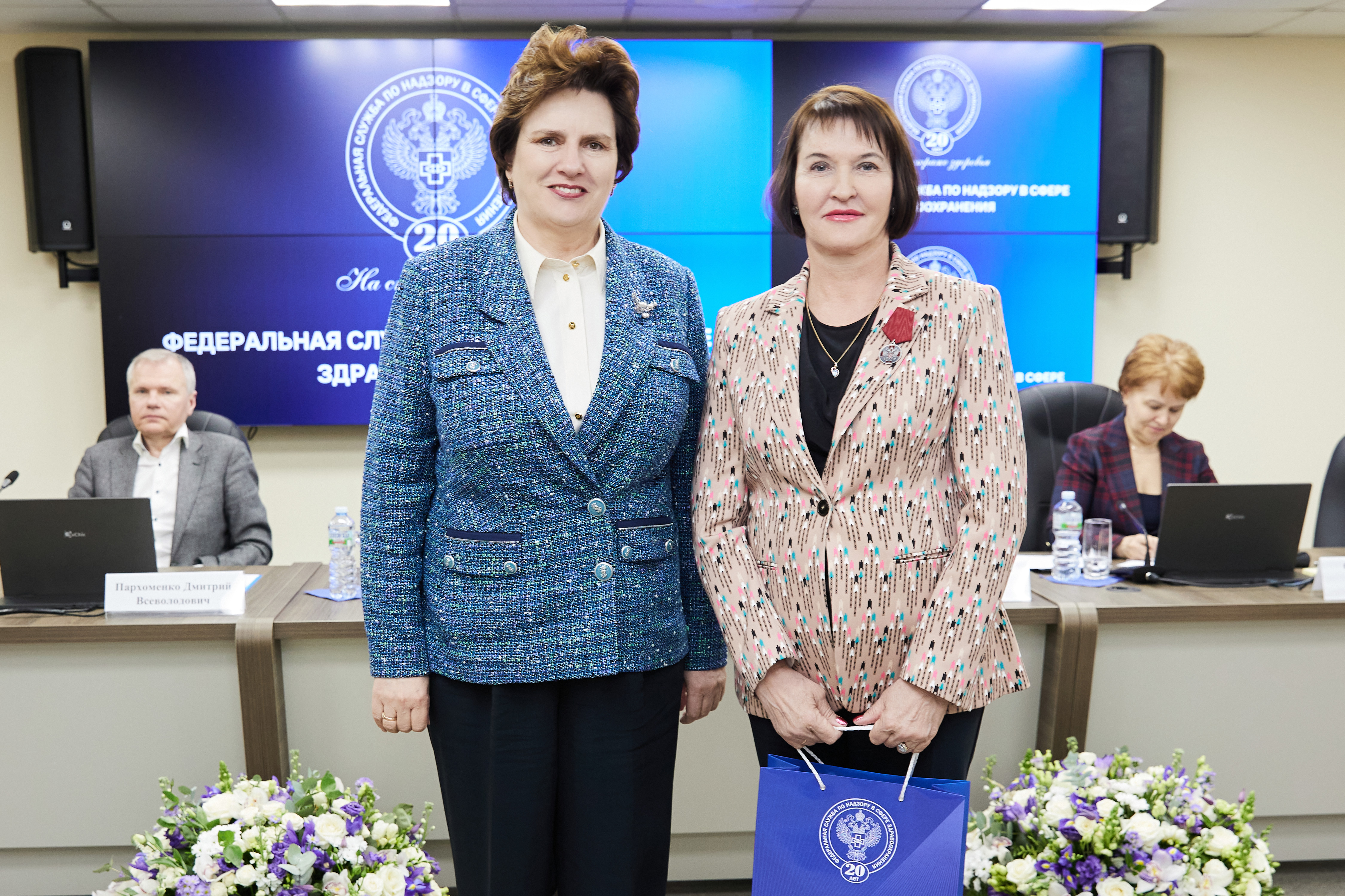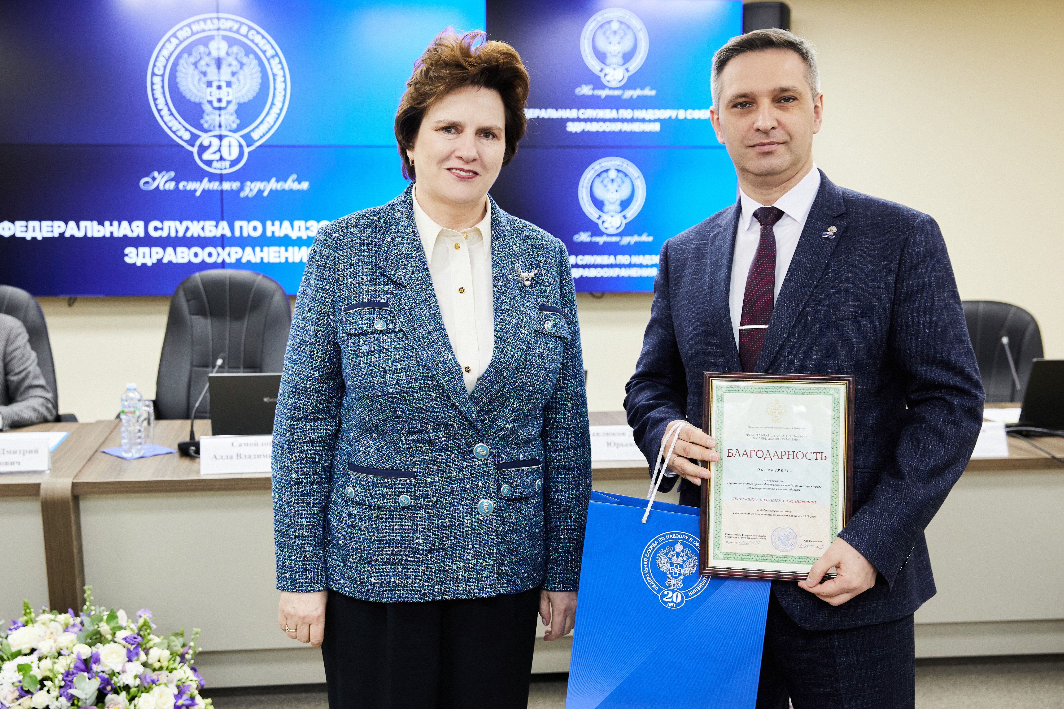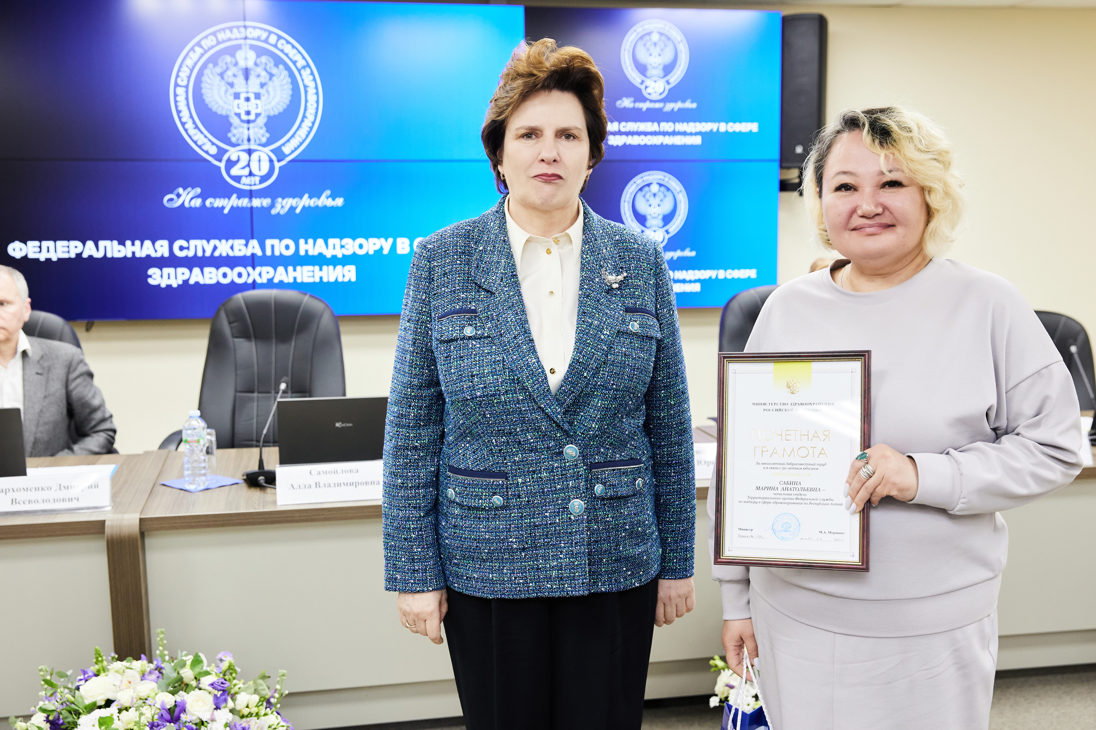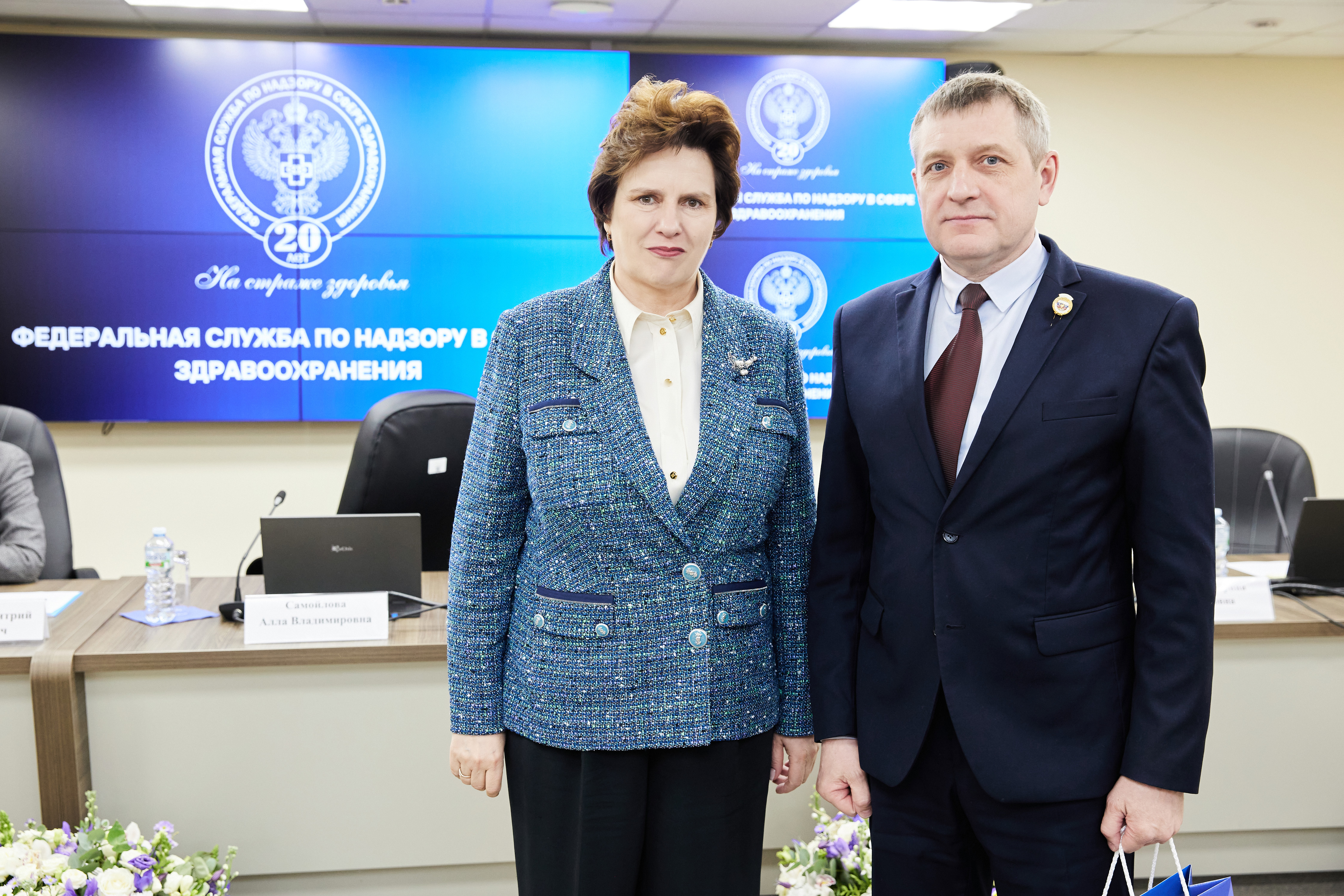 В ходе торжественных мероприятий лучшие сотрудники Росздравнадзора получили заслуженные награды из рук Министра здравоохранения Российской Федерации Михаила Мурашко и руководителя Росздравнадзора Аллы Самойловой: