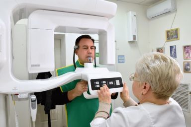 В учреждении установлен рентгеновский дентальный цифровой панорамный аппарат с функцией компьютерного томографа и цефалостатом с принадлежностями. Функционал аппарата позволяет получать высококачественные трехмерные 3D-изображения, которые необходимы для точного планирования сложного хирургического, ортодонтического и терапевтического лечения. Наличие цефалостата дает возможность делать снимки черепа в разных проекциях.